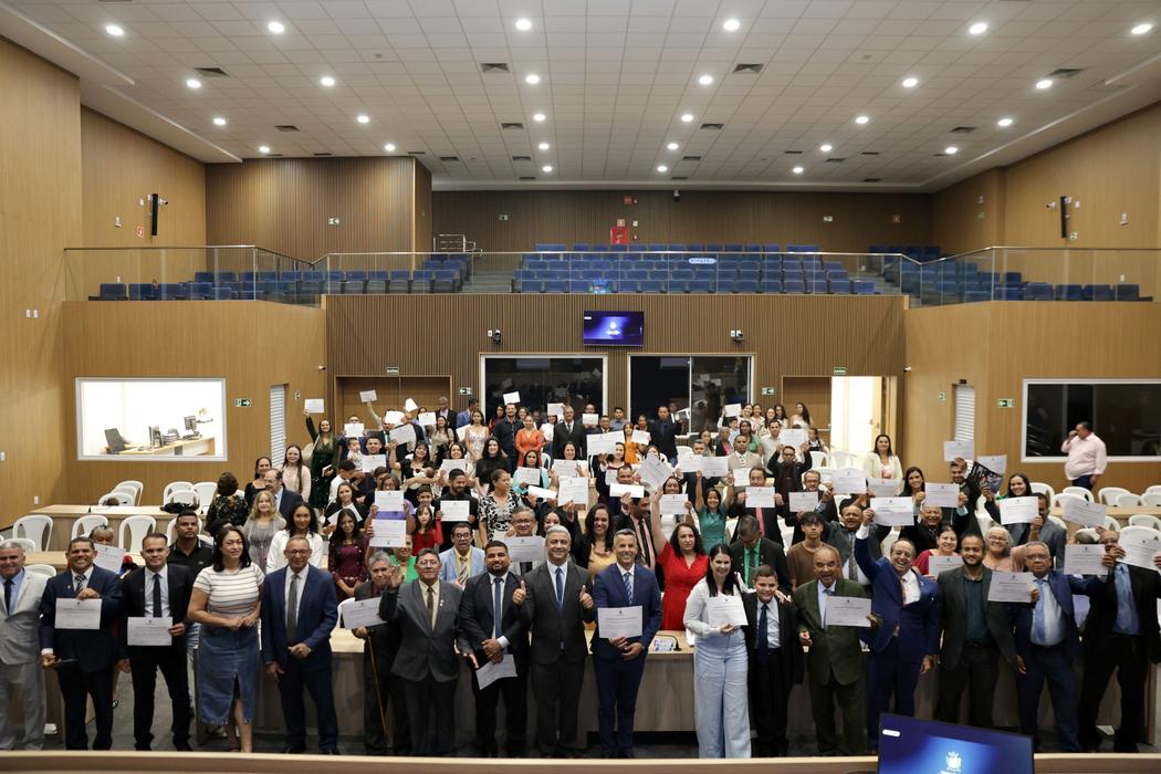 Câmara Municipal de Aparecida de Goiânia, 22/09/2025. Por iniciativa do vereador Cristiano Zói, a Câmara de Aparecida realizou, na última sexta-feira,19, uma Sessão Solene marcada pela entrega do Título de Cidadão Aparecidense ao pastor José Messias dos Santos, presidente da Conframadego, e à prefeita de Cristianópolis, Juliana Izabel de Paula Costa. Na mesma ocasião, quase duzentas Moções de Congratulação foram concedidas a líderes eclesiásticos que atuam como mediadores entre fé, comunidade e poder público, promovendo melhorias em áreas como infraestrutura, segurança, saúde, educação e qualidade de vida.