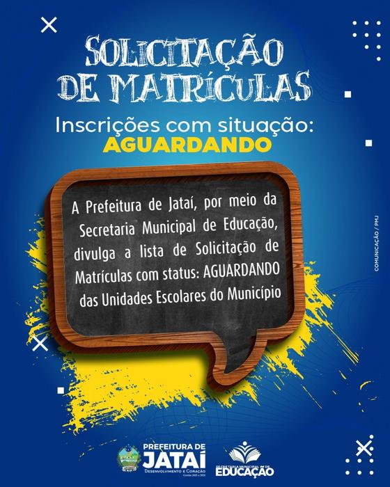 A prefeitura de Jataí, através da Secretaria Municipal de Educação, informa a publicação da Lista de com situação AGUARDANDO.