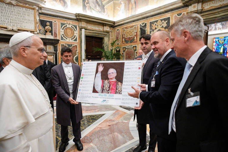 O papa Leão 14 elogiou nesta quinta-feira (9) o trabalho das agências de notícias, que descreveu como uma “barreira contra as areias movediças da pós-verdade e das notícias falsas, potencializadas pela inteligência artificial“.
