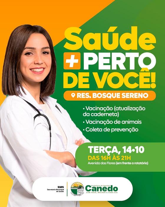 O Programa Saúde + Perto de Você é promovido pela Prefeitura de Senador Canedo, por meio da Secretaria Municipal de Saúde, e percorre diferentes bairros do município, levando atendimento e orientação para milhares de canedenses.