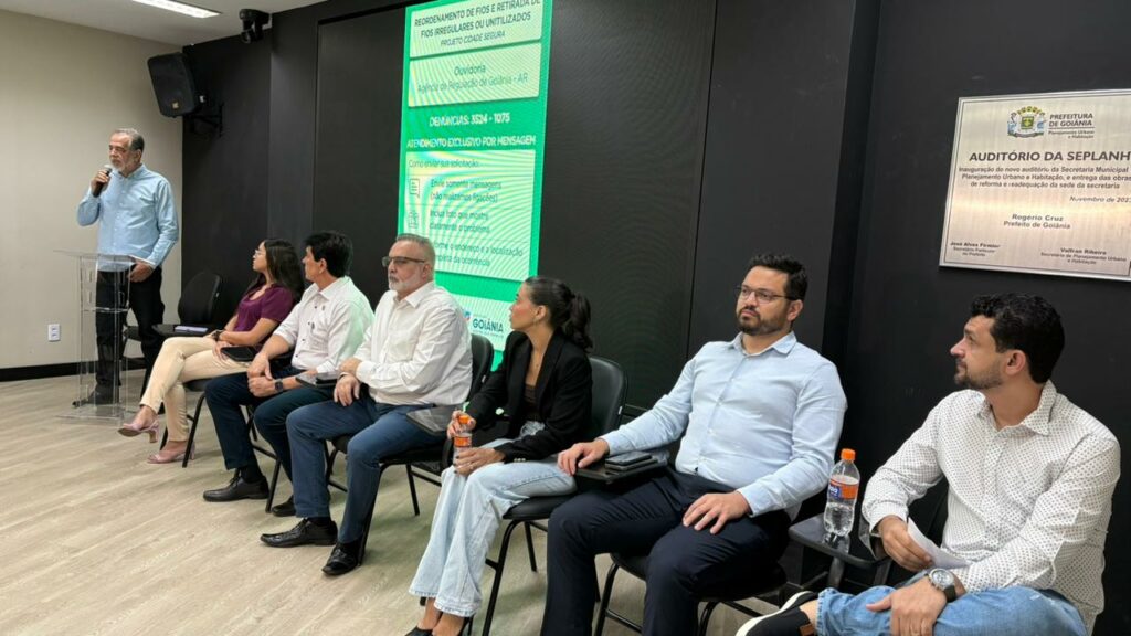 A Prefeitura de Goiânia, por meio da Agência de Regulação de Goiânia (AR), realizou nesta quarta-feira (15/10) a primeira reunião técnica do projeto Cidade Segura, que definiu o início dos trabalhos voltados para o reordenamento da infraestrutura aérea da capital, com retirada de fios soltos, baixos ou irregulares em postes de energia e telecomunicações. O encontro reuniu representantes do Ministério Público de Goiás (MP-GO), Equatorial Energia e Associação das Empresas Prestadoras de Serviço de Telecomunicação e Internet do Centro-Oeste (Aspres).
