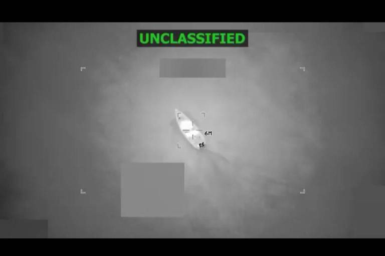 O chefe do Pentágono, Pete Hegseth, publicou nesta sexta-feira (24) um vídeo da ação nas redes sociais. Segundo ele, seis "narcoterroristas" estavam a bordo do barco e nenhum sobreviveu ao ataque.