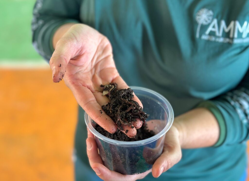 Durante a palestra, foi ensinado como usar um minhocário, um utensílio que se utiliza de minhocas para realizar o processo de transformação de materiais orgânicos em adubos naturais. O processo foi marcado por uma aula didática e com demonstrações práticas, como forma de prender a atenção dos pequenos e garantindo um dia de diversão e aprendizado.