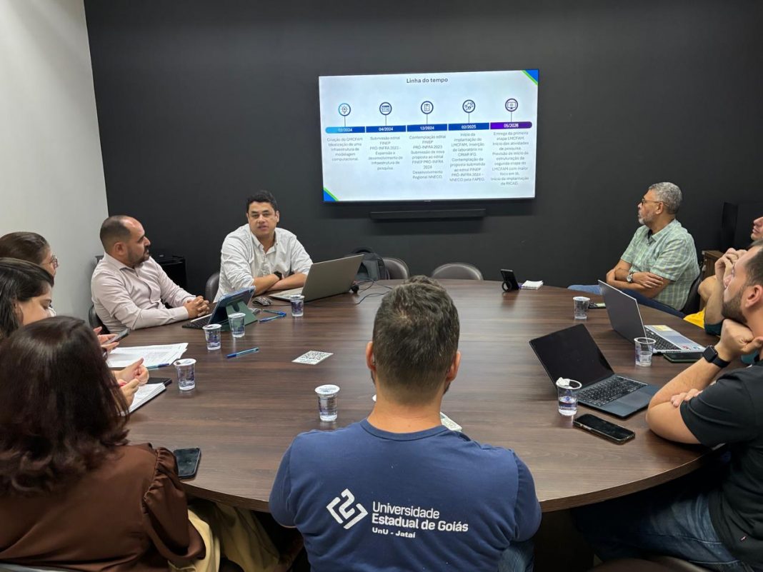 “A reunião teve como objetivo apresentar o insight do Laboratório de Modelagem Computacional de Sistemas Físicos Atômicos e Moleculares pelo nosso grupo, o LMCFAM, que foi recentemente contemplado com o edital FUNEP. Recebemos em torno de R$ 4.300.000,00 e estamos empregando esse recurso para a estruturação de um laboratório de computação de alto desempenho aqui em Jataí,” declarou o Prof. Dr. Rodrigo Lemos Silva.
