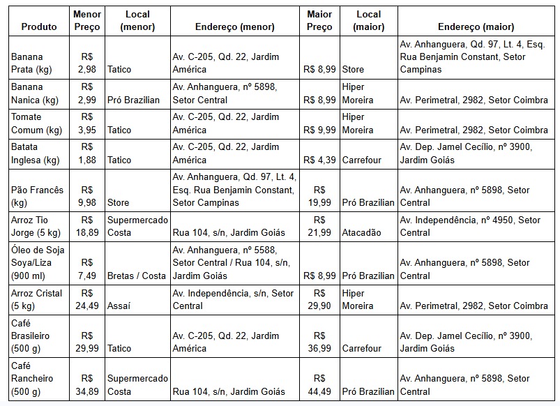 O Procon Goiânia reforça que os preços refletem um recorte específico do mercado e podem variar conforme promoções, reposição de estoque e localização das lojas. O órgão também alerta para que o consumidor fique atento à clareza das informações nos rótulos, aos prazos de validade e às condições de armazenamento dos produtos.