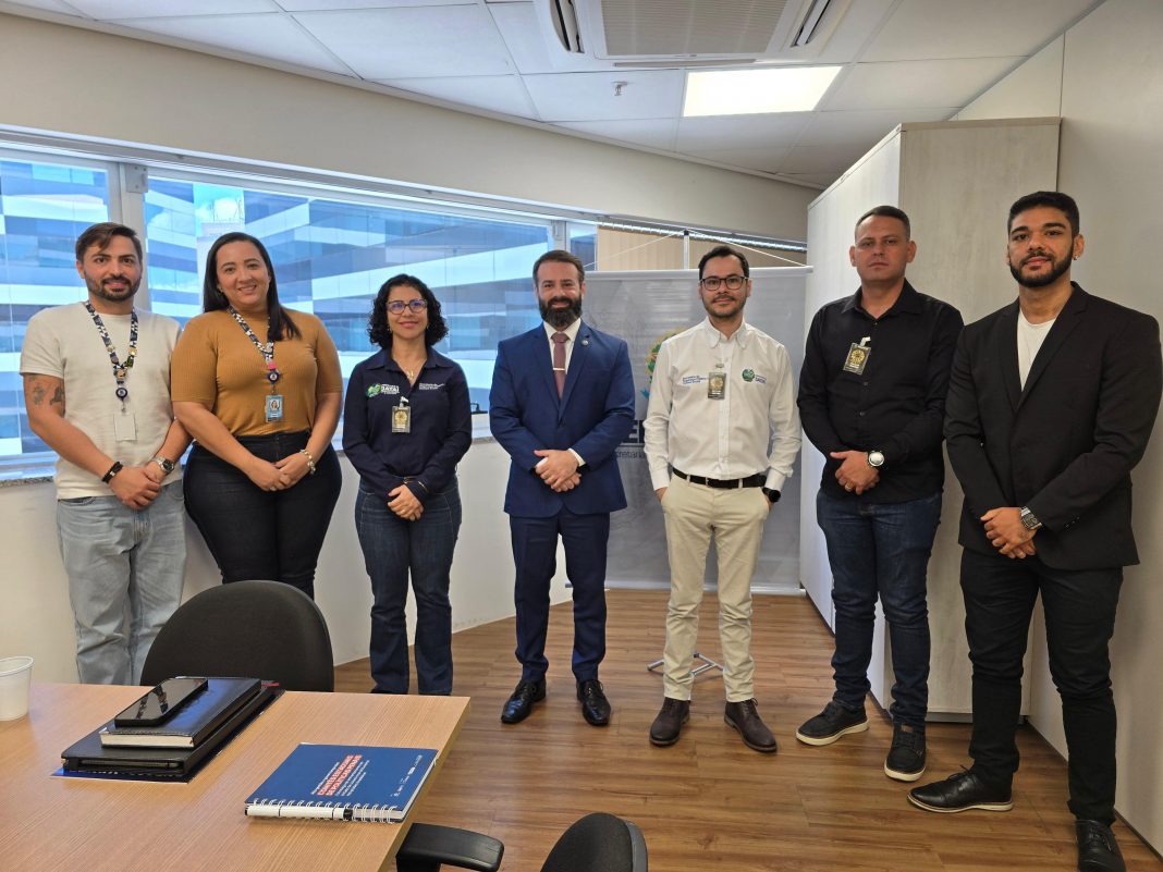 A comitiva de Jataí foi recebida pela equipe técnica do SENAPPEN composta por Cleober Pires (CNAPE), Rafael Andrade (COIR), Fabiane Barbosa (Colaborador Eventual COAP) e Alexandre Lopes (Colaborador Eventual – CNAPE).