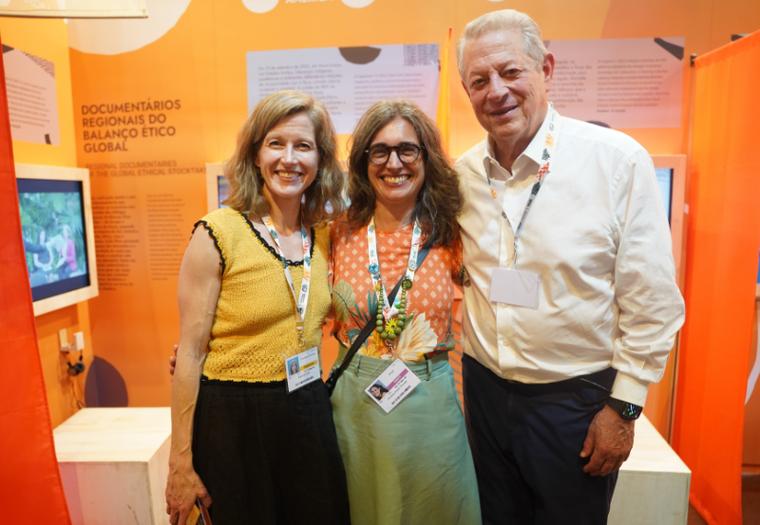 [](https://agenciagov.ebc.com.br/mma/pt-br/noticias/mma-corte_al-gore-2-1.png)Al Gore ao lado de sua filha, Karenna, e Andrea Oncala, do MMA, durante visita ao espaço do BEG na COP30.