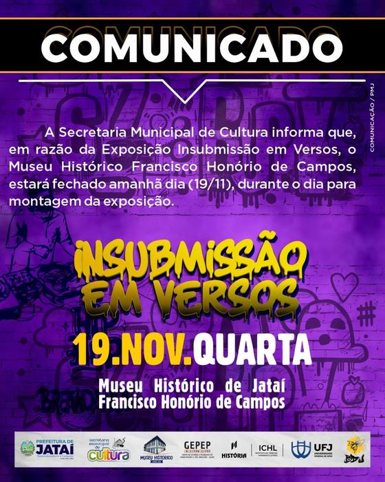 Fonte: https://www.jatai.go.gov.br/museu-historico-fechado-para-montagem-de-exposicao-nesta-quarta-feira-19-11/