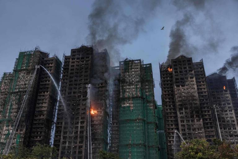O incêndio atingiu os edifícios de Wang Fuk Court nesta quinta-feira (26) e rapidamente se espalhou por várias torres do complexo, que passavam por renovação e portanto tinham andaimes de bambu em seu entorno, exalando densa fumaça. O fogo já foi apagado em 4 torres e controlado em outras 3, e autoridades falam em 76 feridos, entre os quais estão 11 bombeiros.