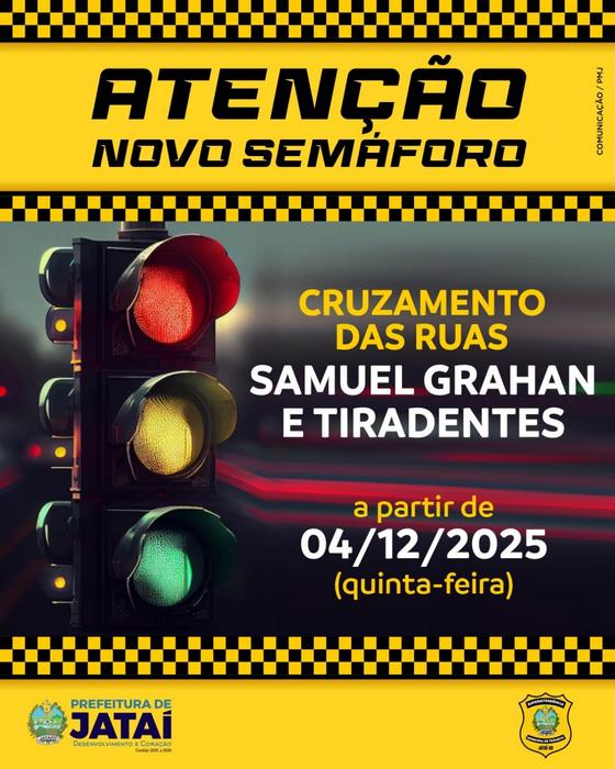 A Superintendência Municipal de Trânsito (SMT) informa que, a partir de quinta-feira, 04/12/2025, entrará em funcionamento um novo semáforo no cruzamento das Ruas Samuel Graham e Tiradentes.