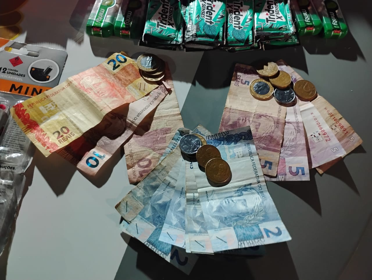 Com ele, os agentes encontraram diversos produtos furtados, incluindo chocolates, balas, chicletes, carregadores, lanternas, caixas de som, acessórios eletrônicos e até um aparelho celular. Segundo o responsável pelo comércio, o prejuízo estimado ultrapassa R$ 2.500,00, além de valores em espécie levados do caixa.