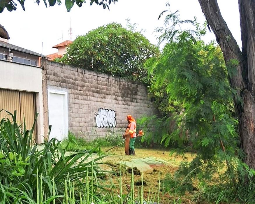 Serviços abrangem a remoção do mato alto em praças, canteiros e calçadas