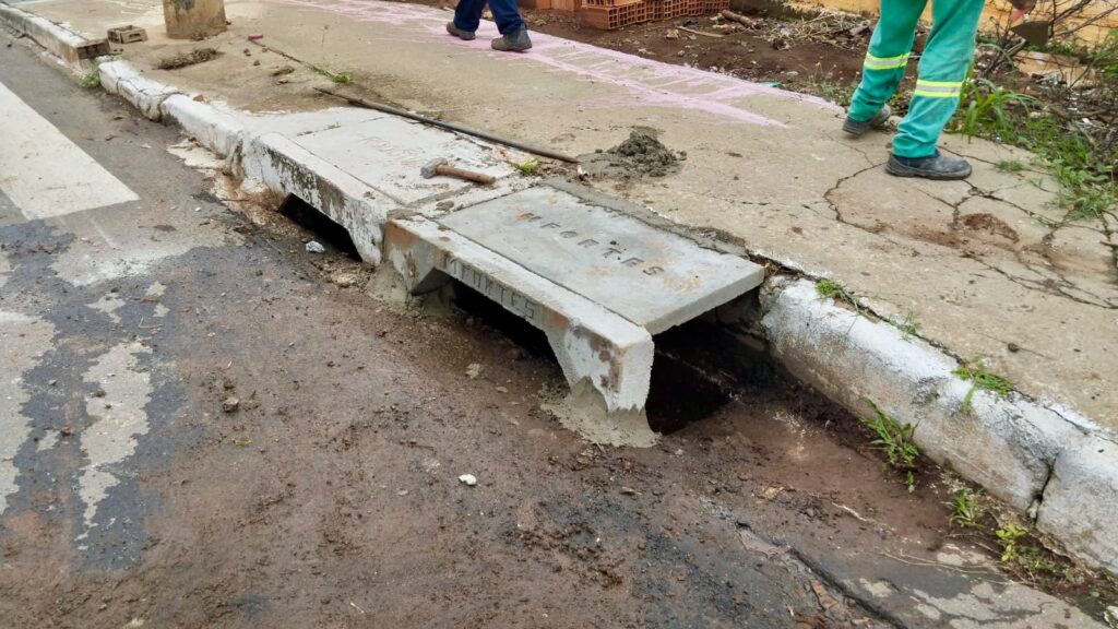 O serviço inclui a desobstrução de galerias pluviais, remoção de resíduos, limpeza superficial, além da manutenção ou substituição de tampas danificadas, assegurando o pleno funcionamento da rede de drenagem urbana.
