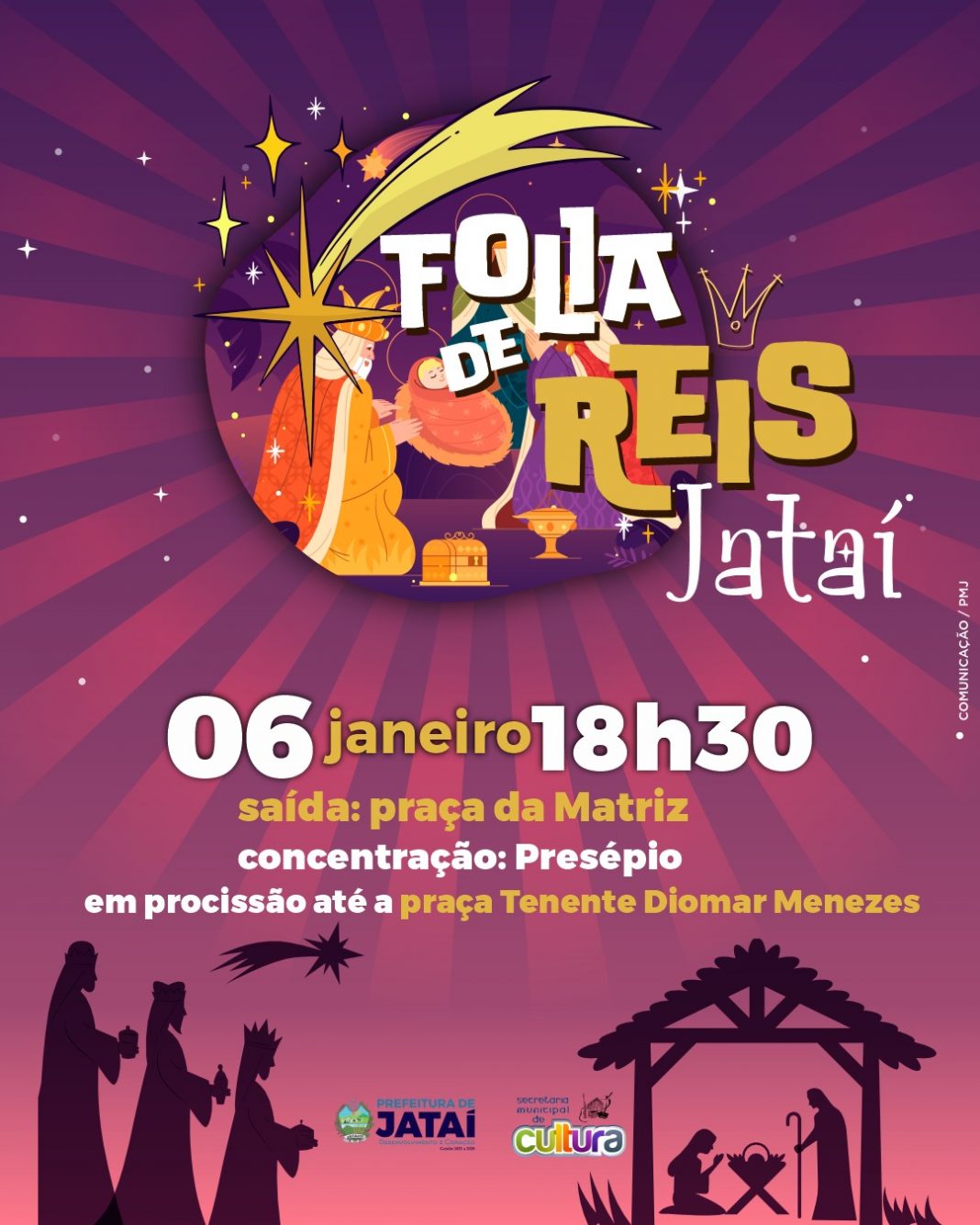 No dia 06 de janeiro, Jataí celebra o encerramento do ciclo natalino com a tradicional caminhada de Reis. A Prefeitura de Jataí e a Secretaria de Cultura convidam todos para acompanhar esse cortejo repleto de história e devoção.