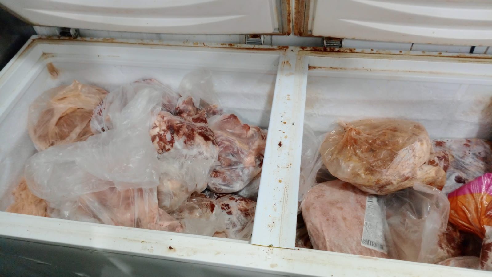 Entre os produtos apreendidos estavam 10 quilos de carne moída e 20 quilos de linguiça de porco, todos fora das condições adequadas para consumo. Durante a vistoria, os fiscais também constataram o armazenamento irregular de carnes em freezers inadequados, situação que compromete a segurança alimentar e pode causar riscos à saúde do consumidor.