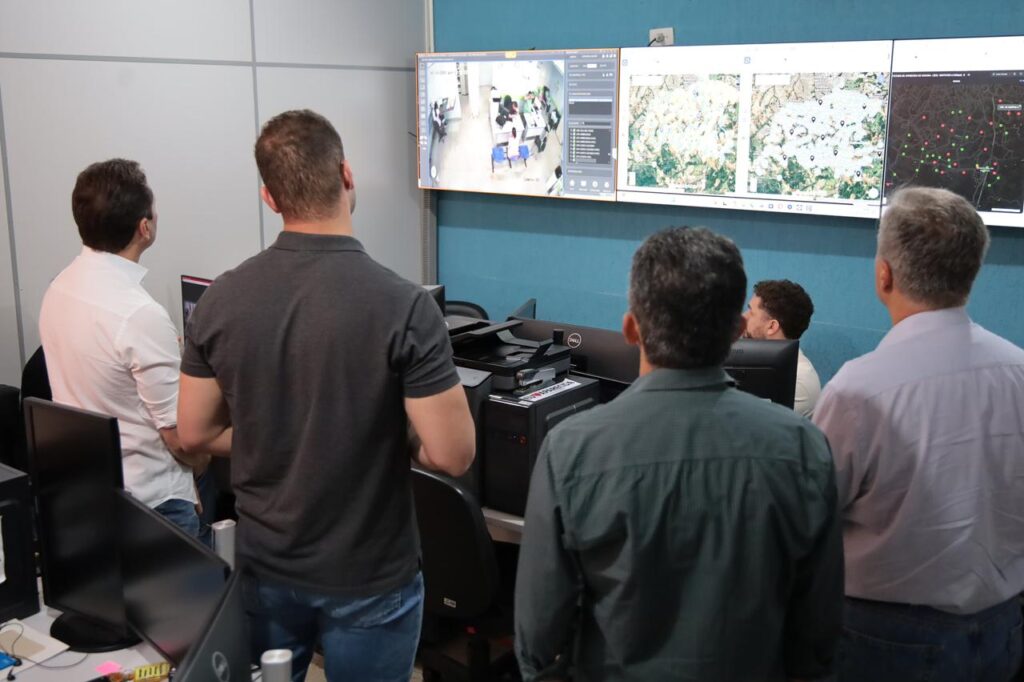 João Pedro Almeida detalhou para Vilela o funcionamento de todos os setores da Secretaria de Ciência, Tecnologia e Inovação. A pasta é responsável, por exemplo, por manter em funcionamento os 750 quilômetros de fibra óptica que interligam os órgãos municipais e as mais de 500 câmeras de videomonitoramento da administração de Aparecida. Por falta de investimentos da gestão anterior, 340 delas ficaram inativas.