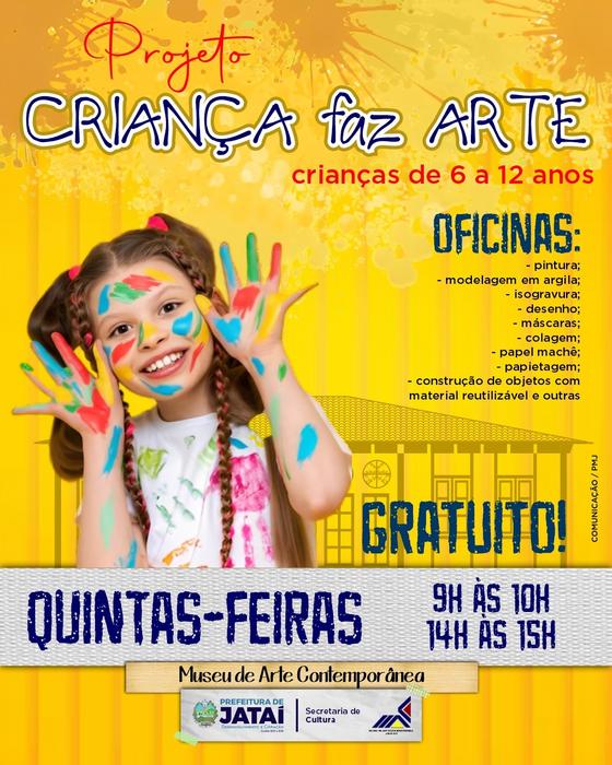 A Prefeitura de Jataí, por meio da Secretaria Municipal de Cultura e do Museu de Arte Contemporânea (MAC), inicia nesta quinta-feira, dia 22, a edição de 2026 do projeto Criança Faz Arte.
