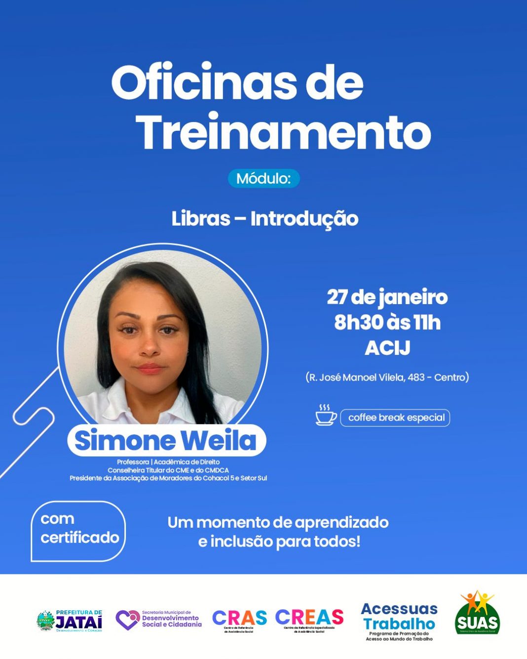 O Programa Acessuas Trabalho convida você para a Oficina de Treinamento – Libras: Introdução, um momento pensado para ampliar o conhecimento, fortalecer a inclusão e promover mais acessibilidade no dia a dia.
