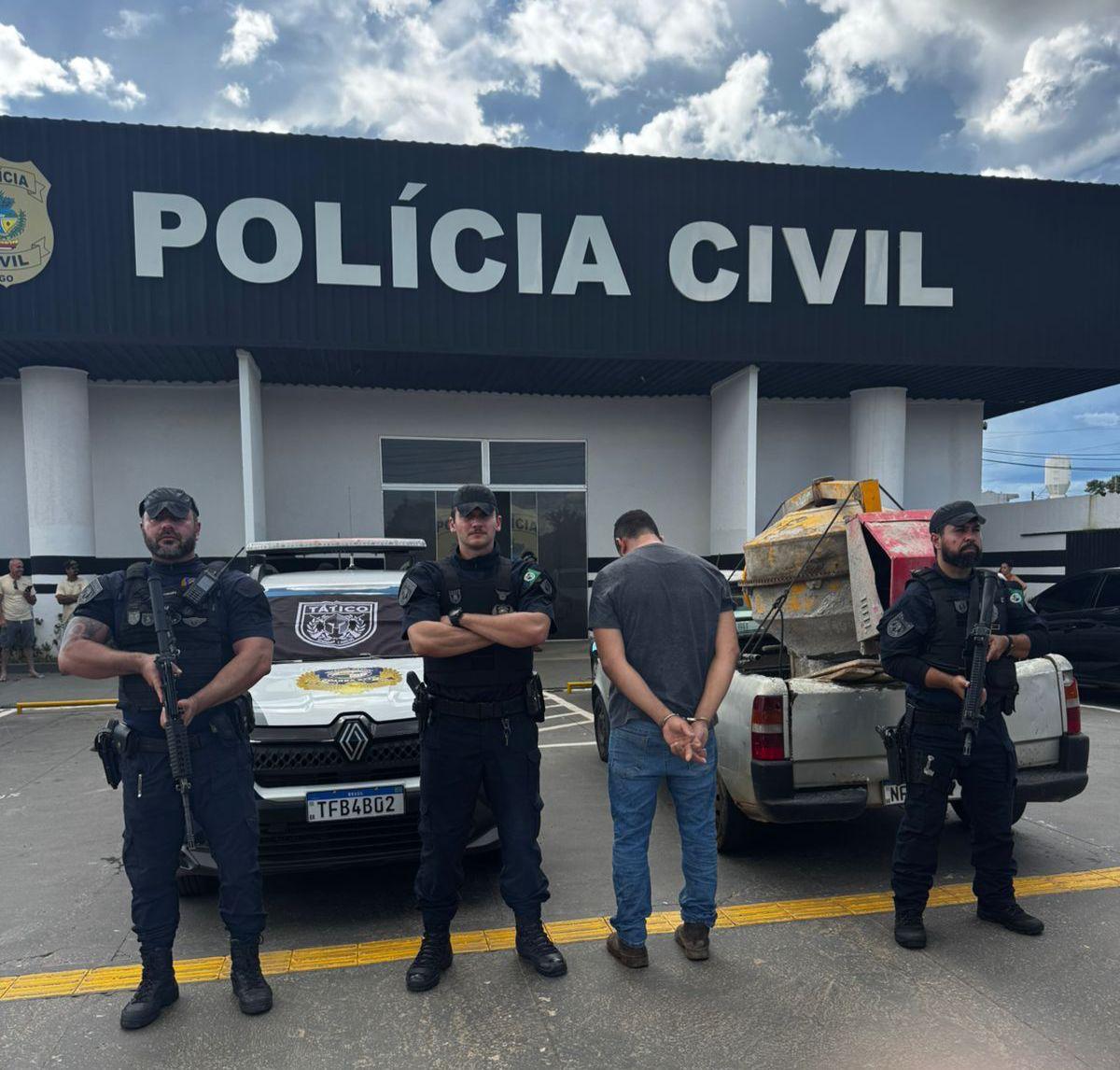 O homem foi detido e encaminhado à autoridade policial competente, juntamente com o objeto recuperado, para os procedimentos legais cabíveis.