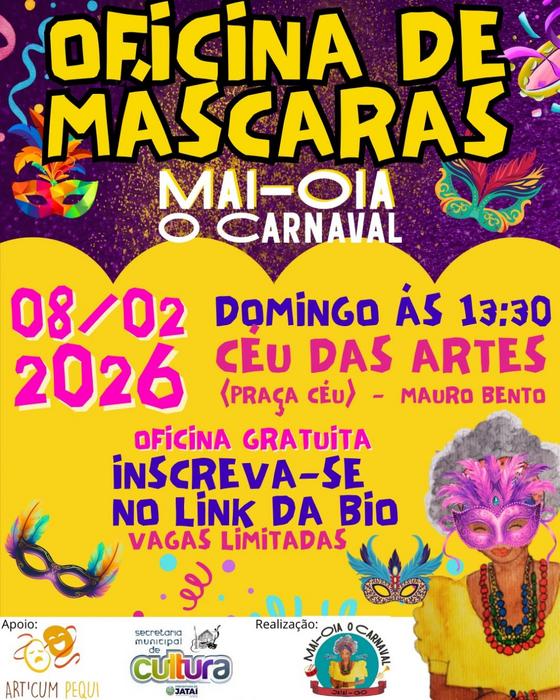 O Carnaval está chegando e nada melhor do que pular a festa com uma máscara feita por VOCÊ! Queremos convidar toda a comunidade carnavalesca para uma Oficina de Máscaras Mai-óia o Carnaval super especial.