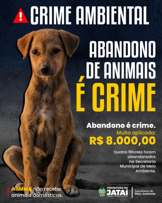 O abandono de animais é crime, conforme previsto na Lei Federal nº 9.605/98 (Lei de Crimes Ambientais) e no Decreto Federal nº 6.514/08. Diante dos fatos, foi aplicada multa no valor de R$ 8.000,00, além das demais sanções cabíveis.