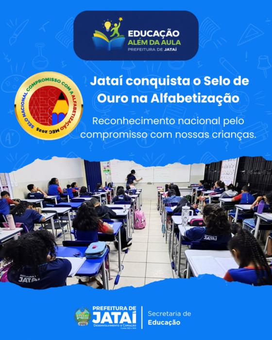Jataí foi reconhecida com o Selo Nacional Compromisso com a Alfabetização – Categoria Ouro, concedido às redes de ensino que desenvolvem políticas e ações concretas para garantir que as crianças aprendam a ler e escrever no tempo adequado.
