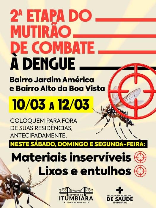 A Prefeitura de Itumbiara realizará a 2ª etapa do Mutirão de Combate à Dengue, com ações de limpeza e eliminação de possíveis criadouros do mosquito.