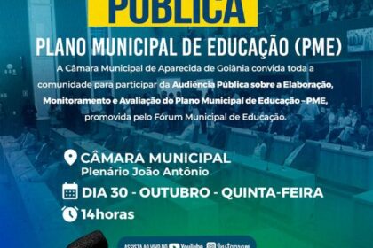 Câmara Municipal de Aparecida de Goiânia, 29/10/2025. A Câmara de Aparecida de Goiânia realiza, hoje, 29, às 19h, uma Sessão Solene em homenagem aos Professores de apoio. A iniciativa é de autoria do ...