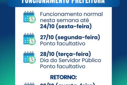 A Prefeitura de Itumbiara decretou ponto facultativo, nas repartições públicas municipais, na segunda e na terça-feira, dias 27 e 28 de outubro. Em função do Dia do Servidor Público, comemorado em 28 ...