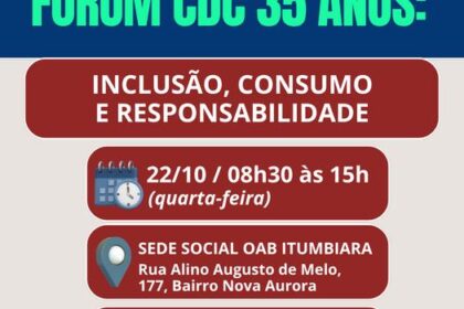 20 de outubro de 2025 1/1 1/1 1/1 Fórum CDC 35 anos: Inclusão, Consumo e Responsabilidade O Procon Itumbiara realiza, com apoio da OAB e do Governo Municipal, um grande evento gratuito em comemoração ...