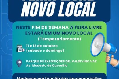 7 de outubro de 2025 Última atualização: 7 de outubro de 2025 📣 FEIRA LIVRE EM NOVO LOCAL (TEMPORARIAMENTE)! Atenção, feirantes e visitantes! 👩🌾🧺 Neste fim de semana, 11 e 12 de outubro (sábado e dom...