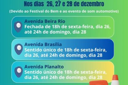 🚨 ATENÇÃO, ITUMBIARA! 🚨 Devido ao Festival do Bem e ao evento de som automotivo, haverá mudanças no trânsito nos próximos dias: 26, 27 e 28 de dezembro: – Avenida Beira Rio FECHADA das 18h de sexta at...
