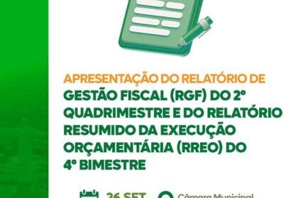 Encontro será realizado no auditório da Câmara Municipal e vai detalhar a aplicação dos recursos públicos, reforçando a transparência e o controle social das contas do município Postada em 25 de setem...