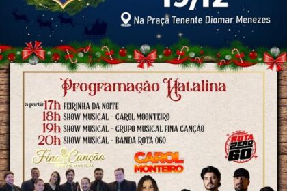 A programação do Natalino desta quarta-feira (17) promete encantar o público com atrações culturais e musicais a partir das 18h, na Praça Bom Jesus. O evento integra arte, música e entretenimento grat...