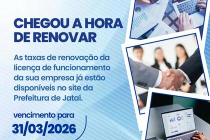 Alvará de licença 2026 Empresários de Jataí, está chegando o dia do vencimento das taxas de vistorias: 31/03/2026. A Prefeitura de Jataí orienta empresários e responsáveis contábeis por estabeleciment...