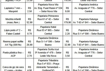 A Prefeitura de Goiânia, por meio do Procon Goiânia, realizou entre sexta-feira (9/1) e segunda-feira (13/1) uma pesquisa comparativa de preços de materiais escolares. O levantamento analisou 38 itens...