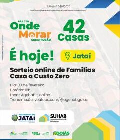 ATENÇÃO, JATAÍ! Hoje tem sorteio do programa Pra Ter Onde Morar – Construção (Casas a Custo Zero) A Prefeitura de Jataí por meio da Superintendencia de Habitação comunica que hoje dia 03 de fevereiro ...