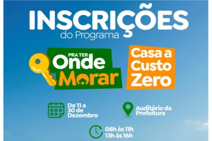 A Prefeitura de Catalão, por meio da Secretaria Municipal de Habitação, em parceria com o Governo de Goiás (AGEHAB), informa que as inscrições para o Programa “Pra Ter Onde Morar – Construção” terão i...