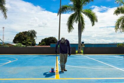 A quadra poliesportiva da Praça do Residencial Dona Lindu está passando por serviços de revitalização realizados pela Secretaria Municipal de Infraestrutura e Serviços (Seinfra). A ação inclui a pintu...