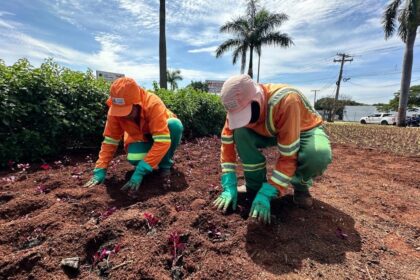 Equipes realizam preparo do solo e manutenção dos canteiros para receber as espécies de sálvia e cravão quarta-feira, 12 novembro 2025, 17:47 | Comurg Comurg planta quase 80 mil mudas floríferas e ref...