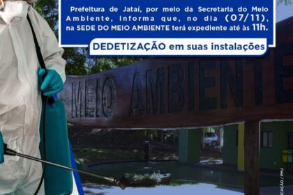 A Secretaria Municipal de Meio Ambiente (SEMMA) informa que no dia 07/11/2025 será realizada a dedetização em suas instalações. Para que o serviço seja executado, o atendimento ao público e o expedien...