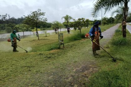 Equipes também realizam outros serviços relacionados ao período chuvoso, como remoção de árvores caídas no interior dos parques, poda de árvores, limpeza de lagos e lixeiras e retirada de resíduos sex...