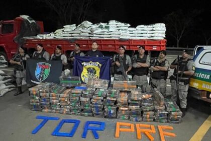 Entorpecente estava escondido em um caminhão que transportava carga de ração animal A Polícia Militar de Goiás (PMGO), por meio do Tático Operacional Rodoviário (TOR), PM2, CPR2 e 3º CRPM, em ação con...