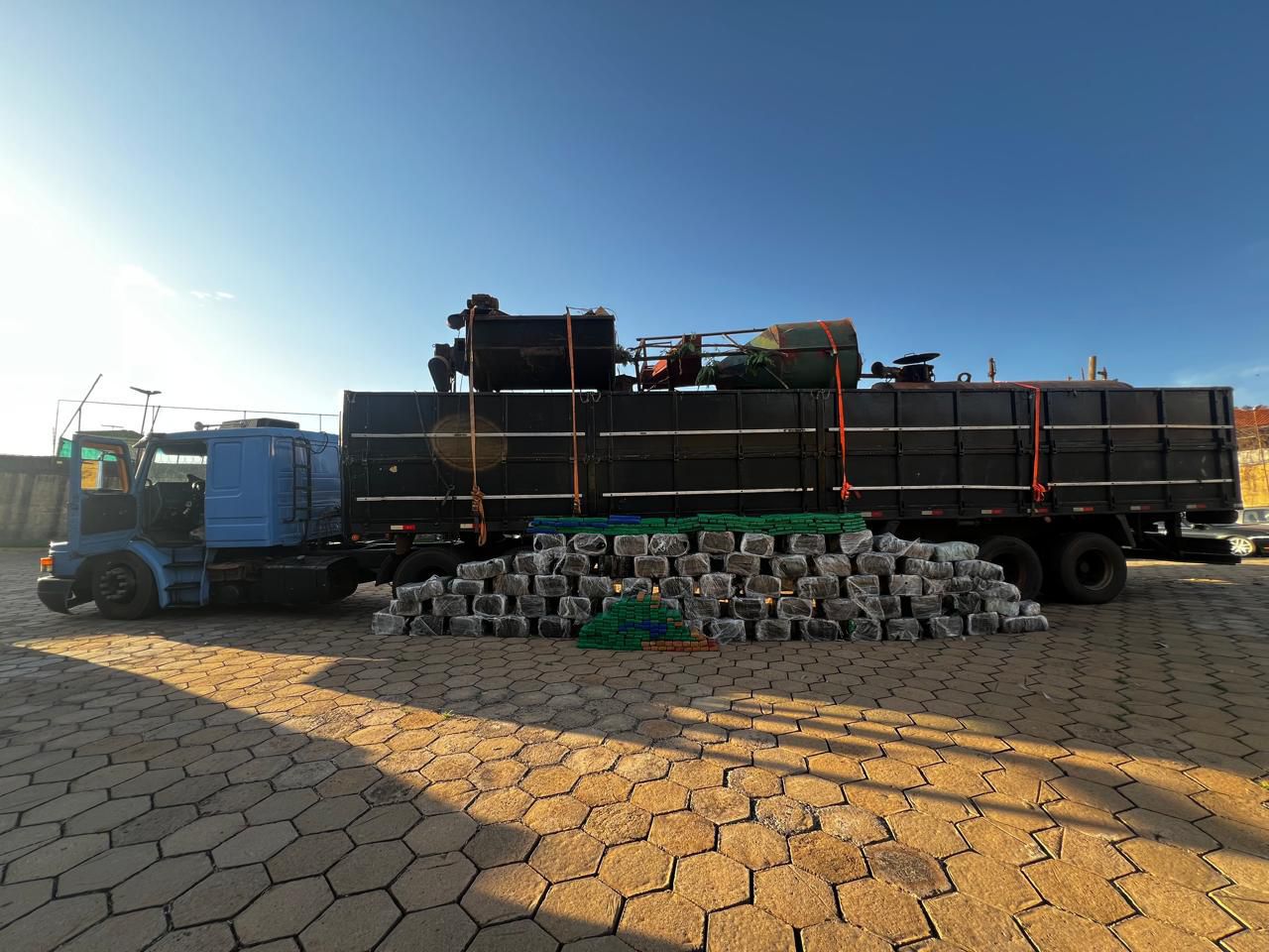 Na sequência, o caminhão Scania foi localizado por equipes da PRF e do 8º BAEP próximo à divisa MS/SP. O veículo foi conduzido até a base da Polícia Militar Rodoviária de Presidente Epitácio, onde, em vistoria detalhada com participação de todas as forças, foram encontrados os entorpecentes ocultos em meio a uma carga de sucatas.