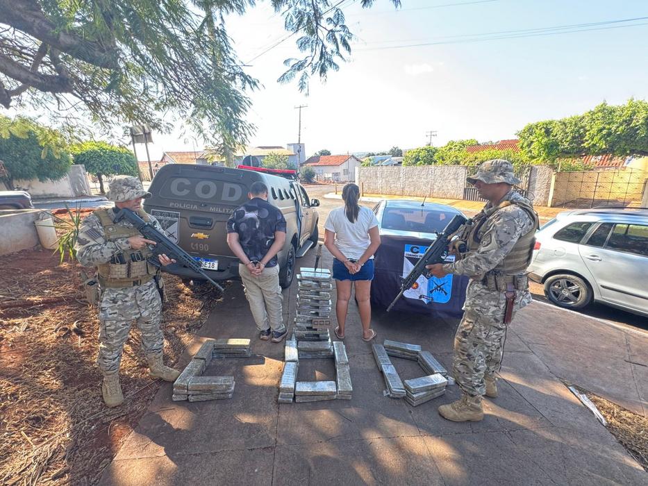 O casal, identificado como M.J.R.F., de 20 anos, e M.P., de 22 anos, viajava com dois filhos pequenos, de 1 e 2 anos de idade, e tentou inicialmente despistar a equipe, alegando estar em uma viagem de férias em família. No entanto, durante a vistoria no veículo, os policiais localizaram a carga ilícita.