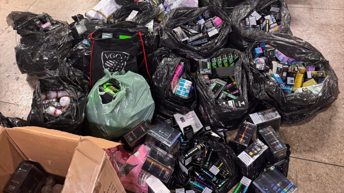 No local, foram apreendidas cerca de 400 unidades de cigarros eletrônicos, avaliadas em aproximadamente R$ 100 mil em mercadorias. Três integrantes do grupo foram presos em flagrante, enquanto um dos sócios permanece foragido.
