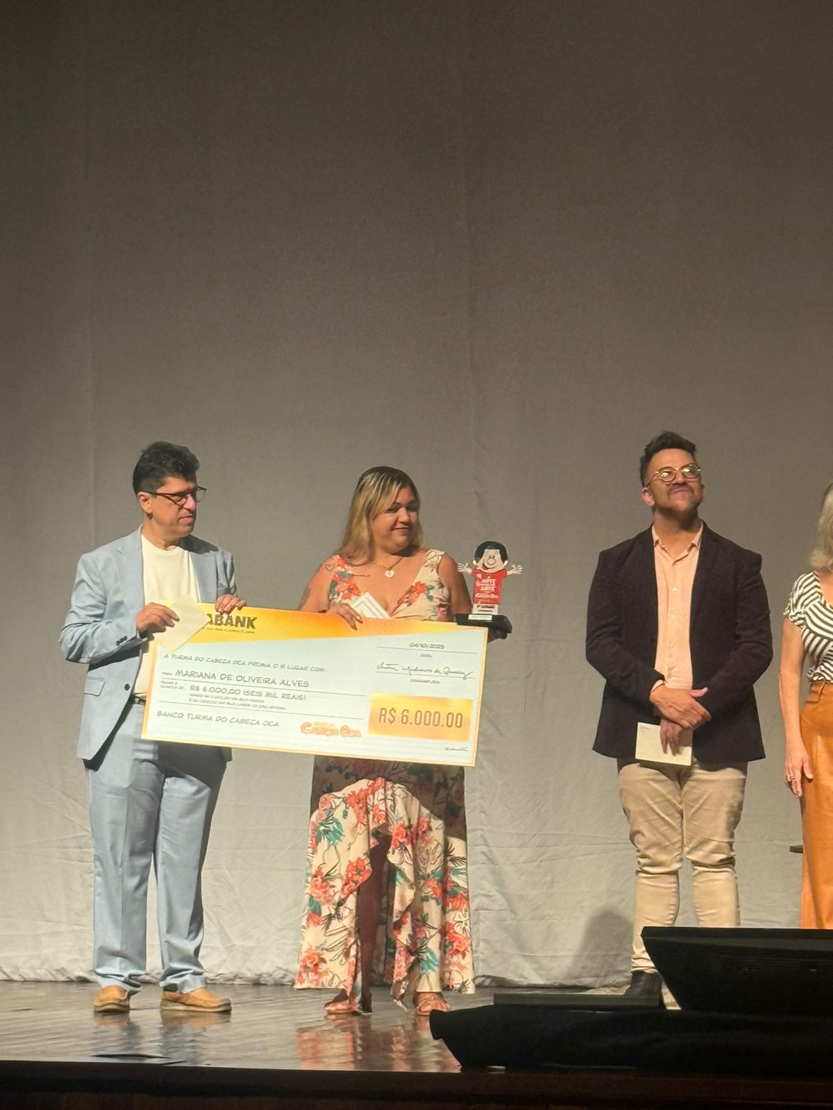 “Eu estava muito nervosa, mas confiante, pois trabalhamos desde o início do ano em um projeto de educação ambiental, incluindo a obra do Cabeça Oca. Esta é a nossa segunda premiação do ano, e estou extremamente feliz com o reconhecimento.”