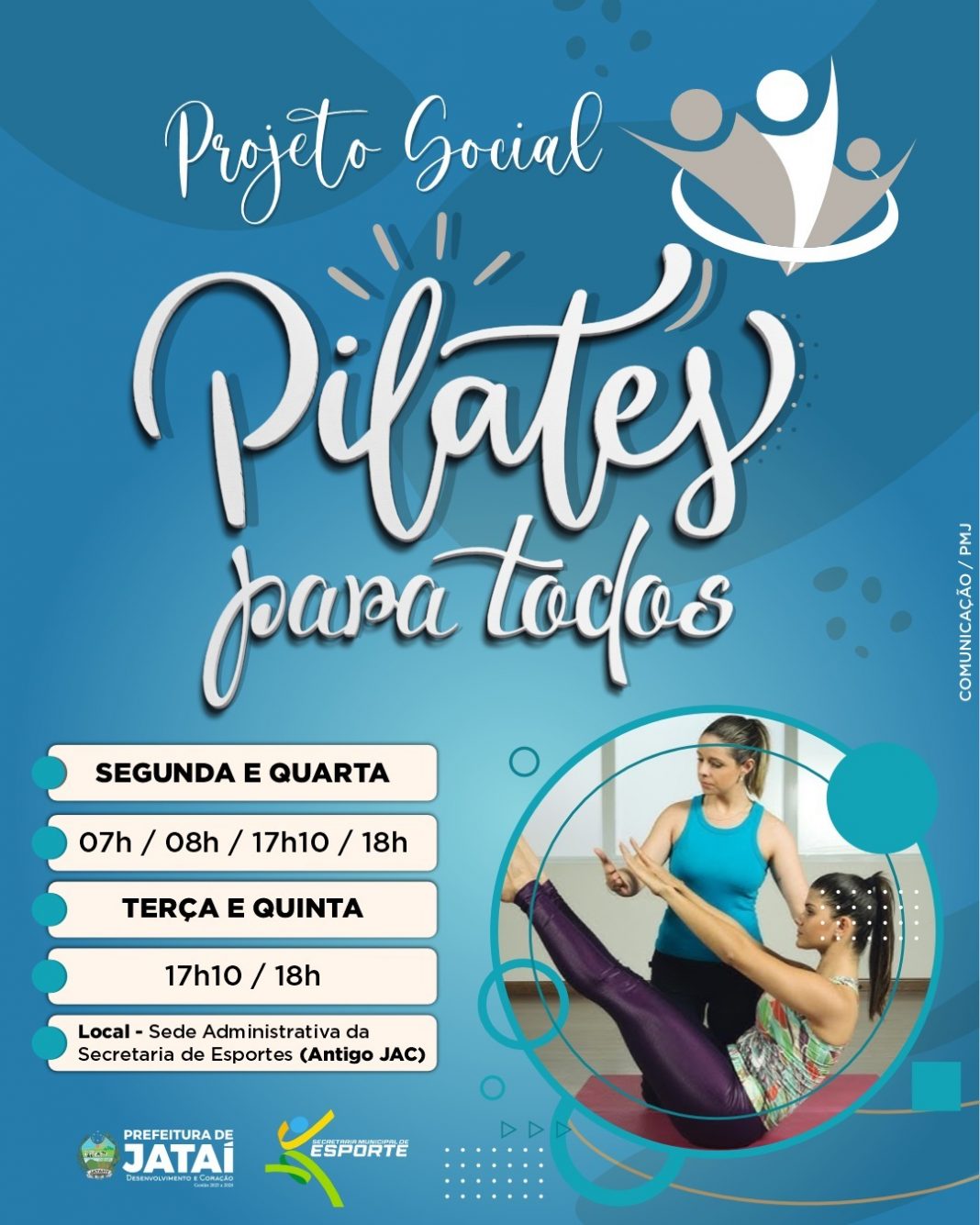 A Prefeitura Municipal, por meio da Secretaria Municipal de Esportes, informa que estão abertas as inscrições para o Projeto Social Pilates Para Todos.
