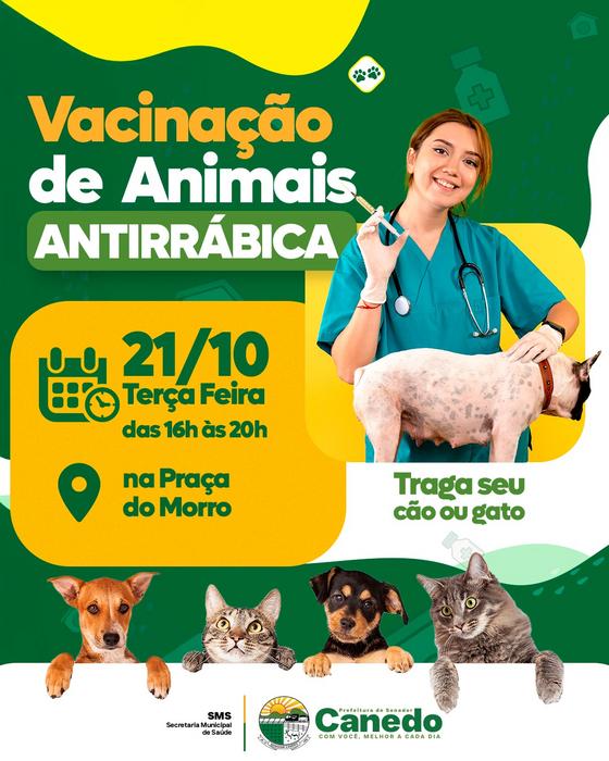 A Prefeitura de Senador Canedo, por meio da Secretaria Municipal de Saúde e do Centro de Zoonoses, realiza nesta terça-feira, 21, das 16 horas até às 20 horas, uma ação de vacinação antirrábica na Praça do Morro, no Conjunto Morada do Morro. A iniciativa tem como foco imunizar cães e gatos com mais de três meses de idade, garantindo a proteção contra a raiva — doença fatal que pode ser transmitida aos humanos.