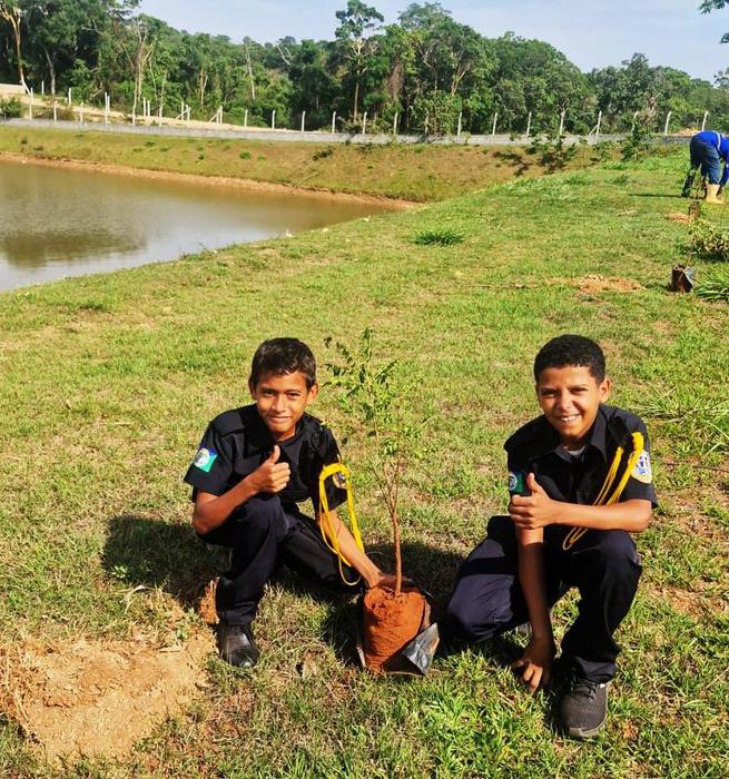 Em Senador Canedo, na Estação de Captação Bonsucesso, da Sanesc, Guarda Mirim realizou uma ação de preservação ambiental. No local, mais de 150 mudas, doadas pela AMMA, foram plantadas, mostrando, na prática, às crianças a importância de cuidar da natureza e valorizar o meio ambiente. A ação faz parte da proteção às nascentes do município.